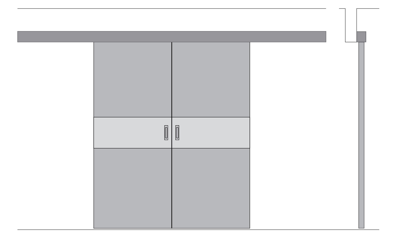 В обоих вариантах дополнительно можно установить доводчик и механизм синхронного открывания, облегчающие эксплуатацию конструкции. Система открывания дверей Купе гармонично впишется в интерьер большого обеденного зала, гостиной или комнаты переговоров. Верхнее крепление легко скрыть с помощью различных декоративных элементов или стандартного карниза МДФ в цвет дверного полотна.