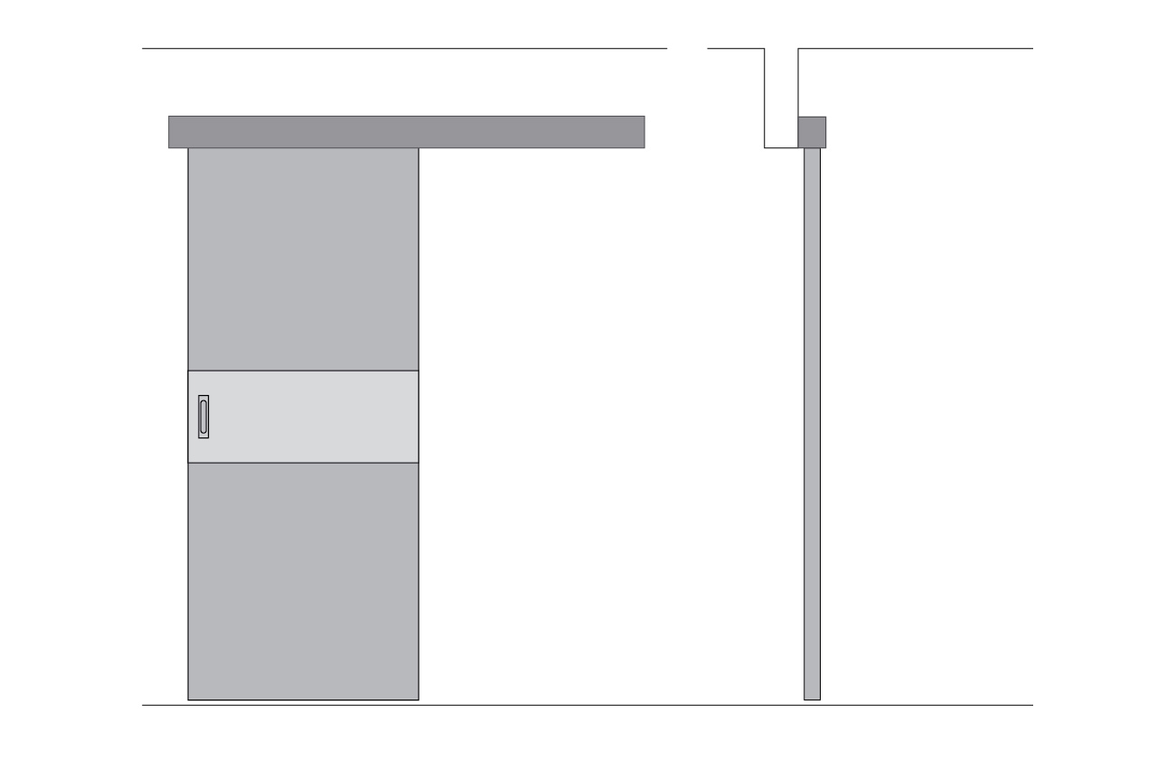 Двери-купе изготавливаются в двух вариантах - с расположением дверного полотна внутри проёма и вдоль стены. В первом варианте дверное полотно крепится к направляющей, установленной в верхней части дверного проема. В этом исполнении система открывания дверей Купе устанавливается на две створки, чтобы уменьшить глубину кармана внутри стены. Во втором случае алюминиевая направляющая крепится к стене, вдоль которой движется полотно.